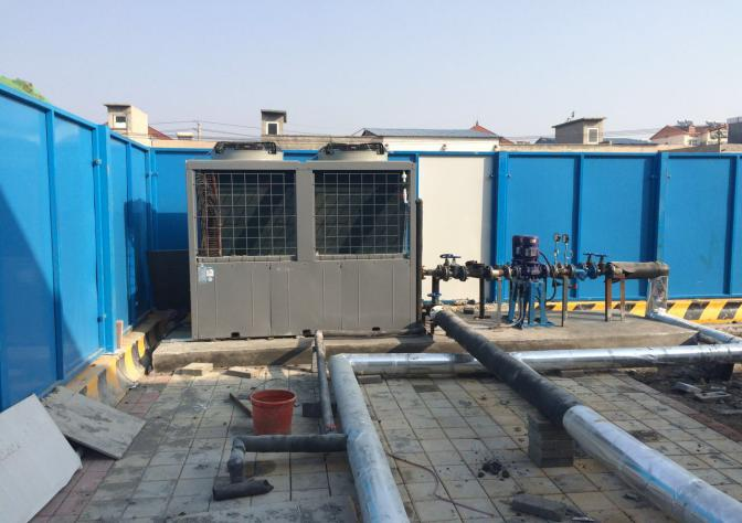 项目位于济南市历城区彩石镇城建学院“被动式节能建筑”的实训楼。本案主要应用了办公区空气源中央空调系统和工人生活区空气源热泵洗浴热水系统。其中,中央空调系统主机采用PASRW025S-V型一台,室内末端机采用立式明装风机盘管;热水系统主机采用PASHW050S-X1型一台,水箱为2*1*2m保温水箱。